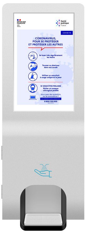 Les gestes barrières sont aujourd’hui rentrés dans les mœurs. Le Totem Media Clean vous permet de vous démarquer avec son écran HD et son système de distribution de gel hydroalcoolique élégant